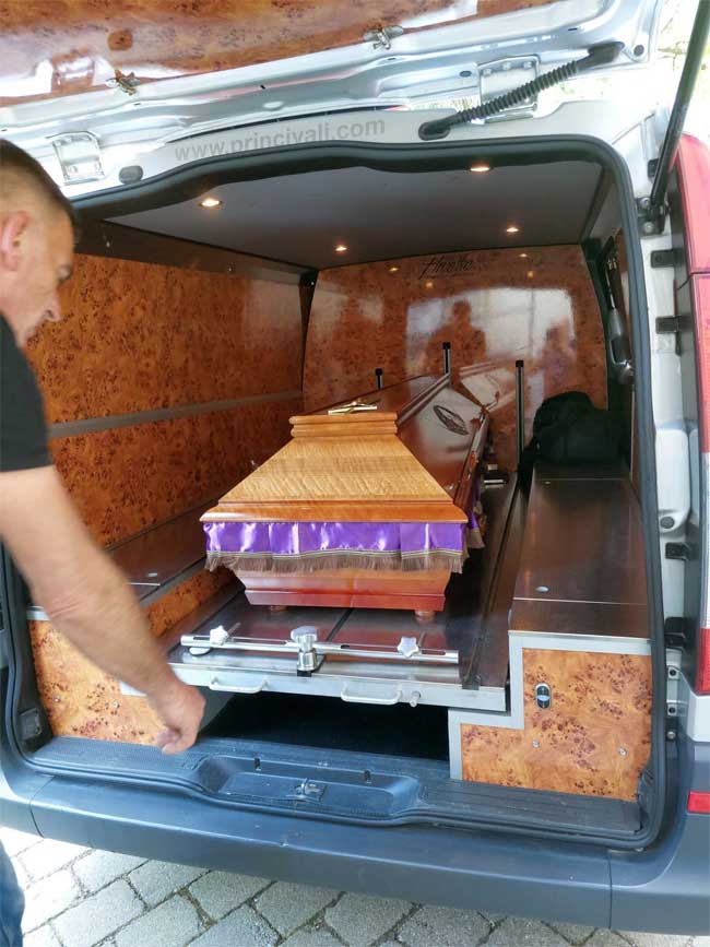 Wir verfügen über vier Bestattungsfahrzeuge mit dem Fahrer und können den besten Preis für die Beförderung des Verstorbenen zum Begräbnisort anbieten. Kontaktieren Sie uns und wir lassen Ihnen sehr schnell unser komplettes Angebot mit Preisen zukommen. Unsere professionellen Fahrer sind ausgebildet, um alle Formalitäten für die Beförderung von Verstorbenen zu erledigen. Auf längere Reise schicken wir immer zwei Fahrer.